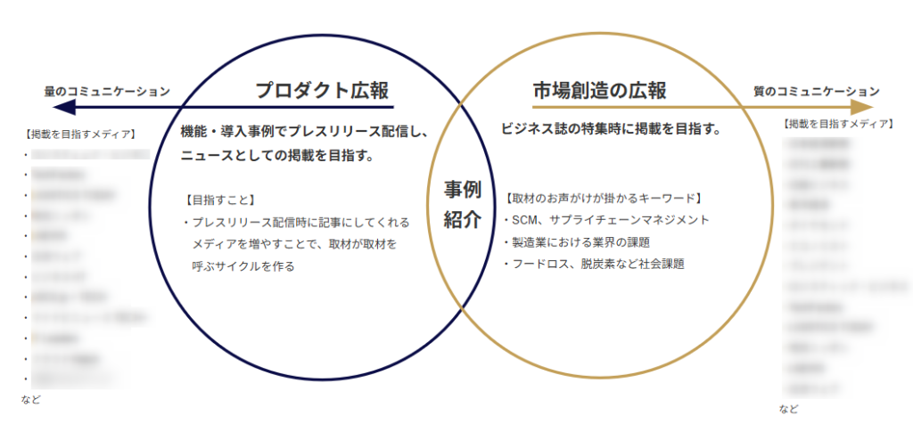 神藏さんは、事業開発における広報の役割を「市場を創造するための広報」と「プロダクトを周知するための広報」の2つにあると定義し、それぞれの目的において、コンパクトにやるべきタスクを定義しています。